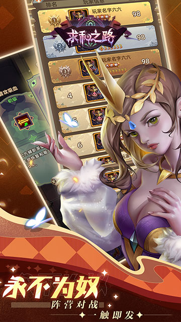 《求和之路》是一款合成+轻自走棋为核心玩法的中度卡牌内核游戏。产品在美术端以刀塔为背景,做原创二次开发,加强了角色战斗表现,以西方诸神为题材,在传统卡牌养成基础上,加入自走棋玩法,搭配不同地形、局内养成等轻策略趣味玩法,开启诸神闯关之旅。